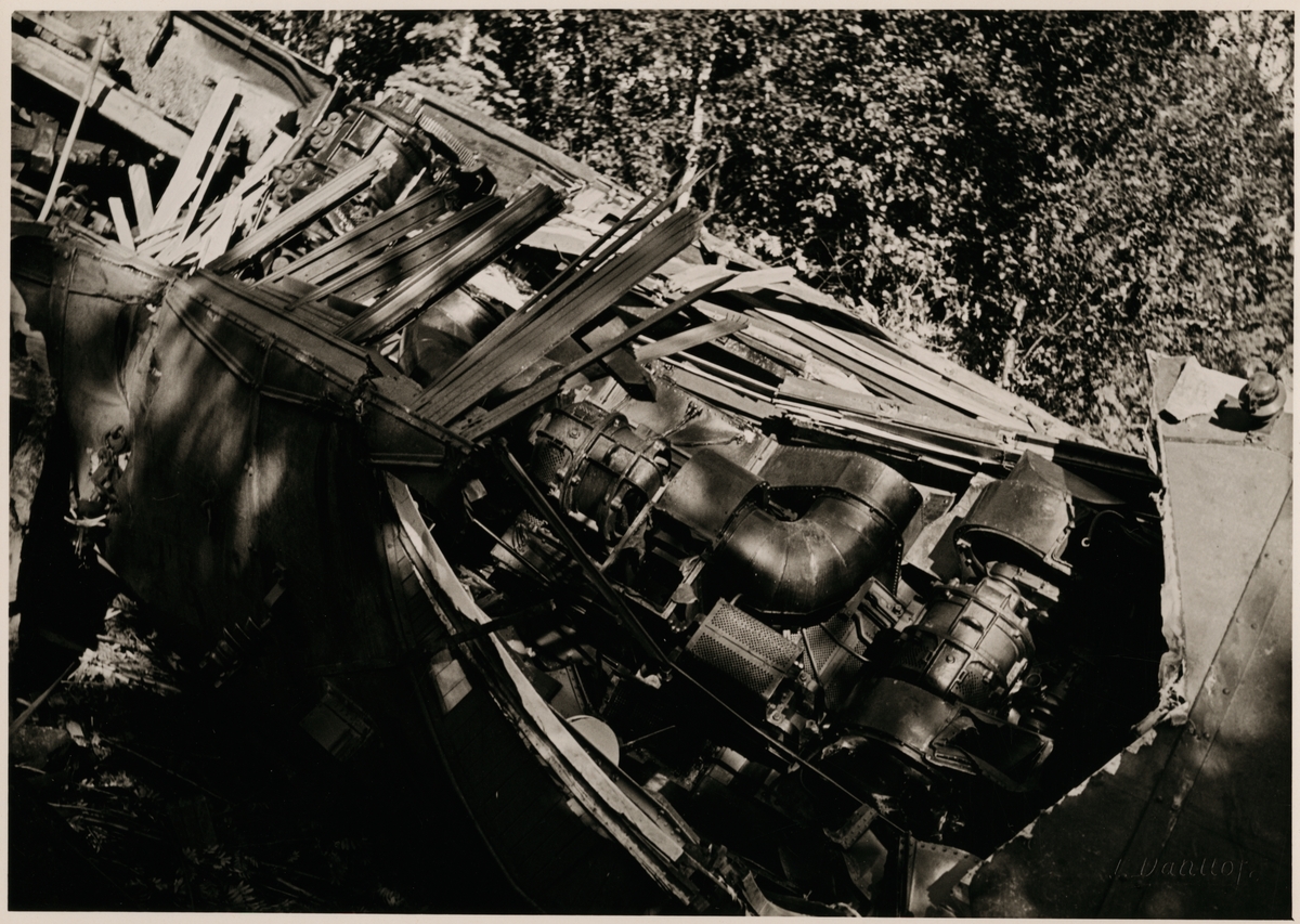 Statens Järnvägar, SJ Oe 74 och SJ Oe 75 har vält och ligger utanför spåret efter jordskred i närheten av Straumsnes på linjen mellan Riksgränsen och Narvik augusti 1937.