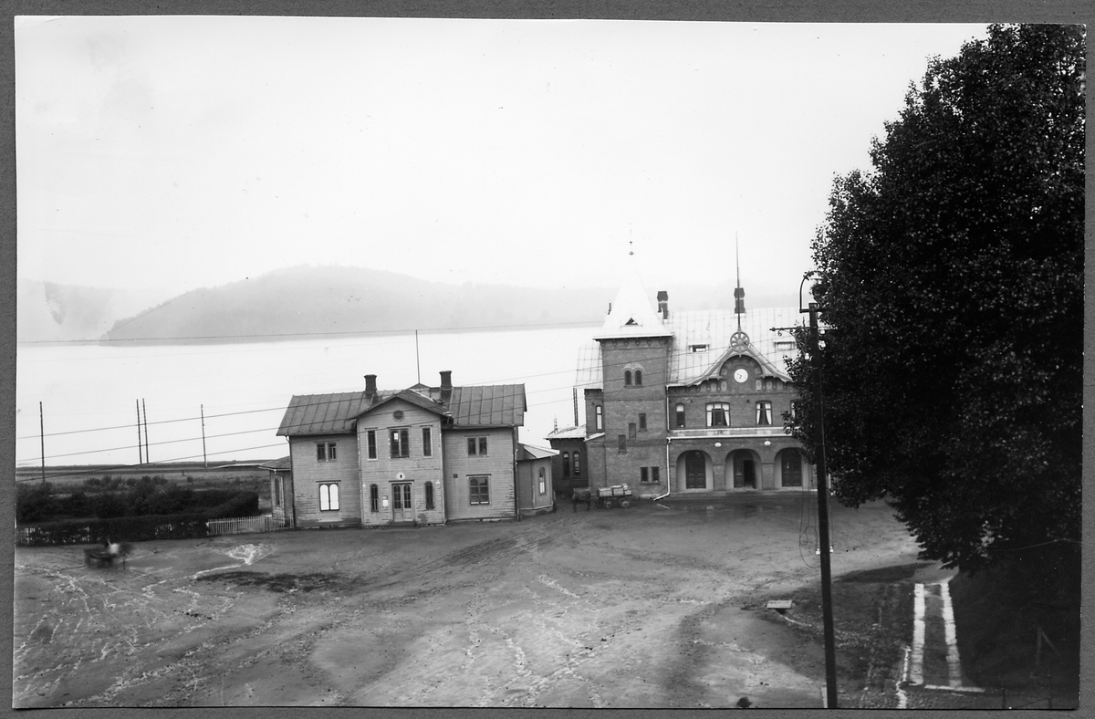 Äldsta stationshuset till vänster. Det ress några år efter att det nya stationshuset tagits i bruk.