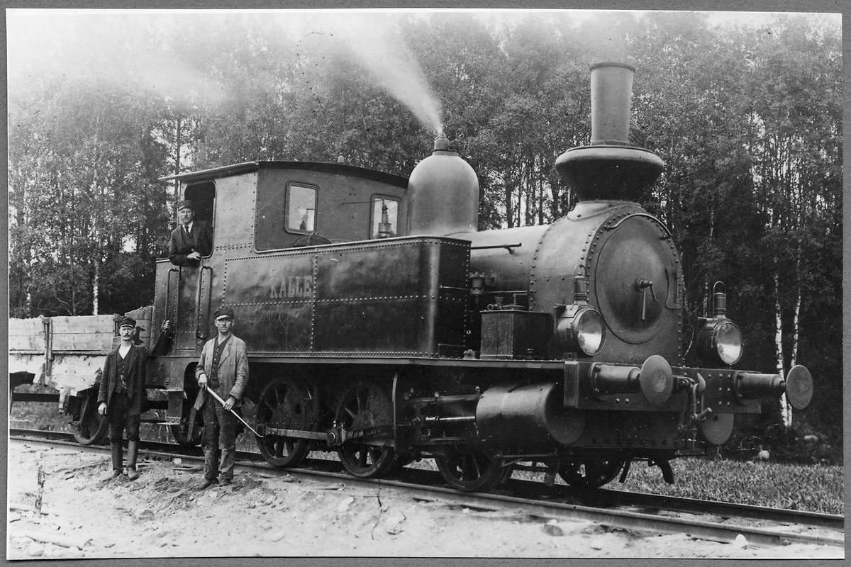 Ångloket "Kalle" vid byggandet av Varberg - Ätrans Järnväg, WbÄJ. Ägare entreprenören Saabye & Lerche.
