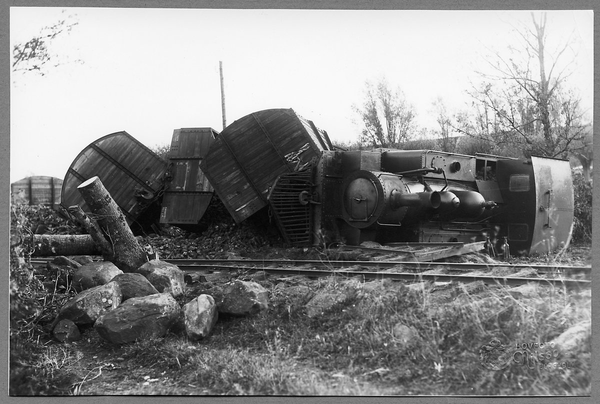 Ölands Järnväg, ÖJ lok 3 med betlastade vagnar efter urspårning.