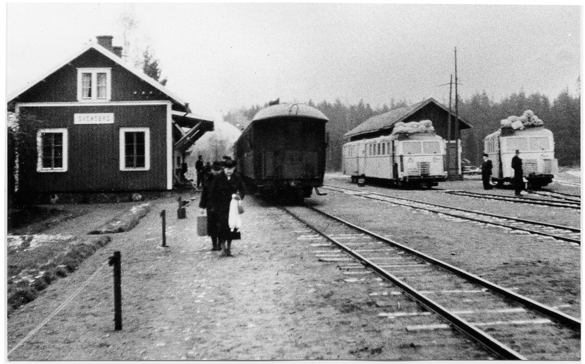 Rälsbussar och persontåg på Svensbro station.