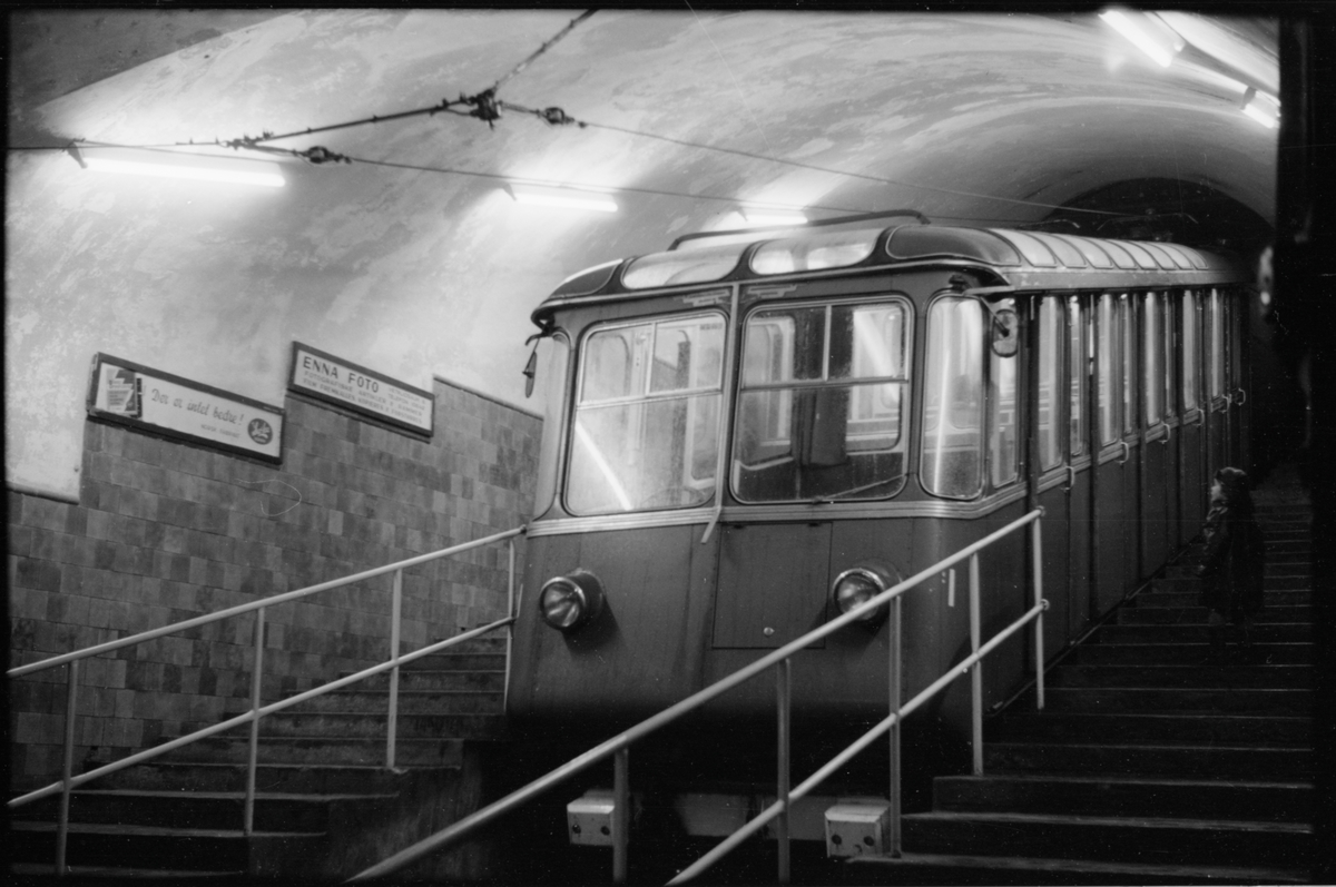 Bergen Sporvei Aktieselskabet, BS spårvagn 1 på Flöibanan nedre station.
