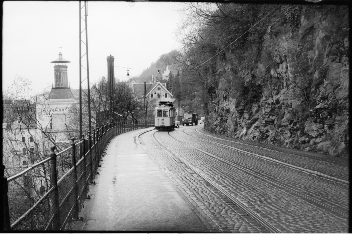 Bergen Sporvei Aktieselskabet, BS spårvagn 107 på Kalvedalsveien linje 2 - Fridalen.