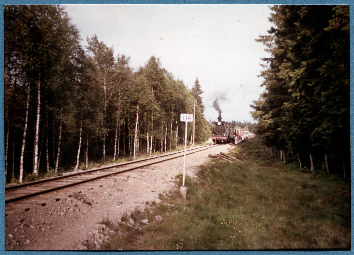 Godståg drivet av Statens Järnvägar, SJ Gp 3118 på linjen mellan Dädesjö och Brittatorp. Loket är före detta Västergötland - Göteborgs Järnvägar, VGJ lok 21.