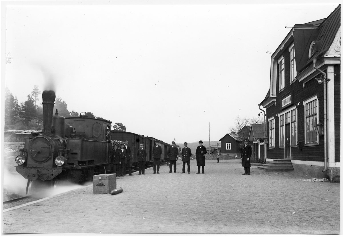 Virserum station med personal och persontåg.