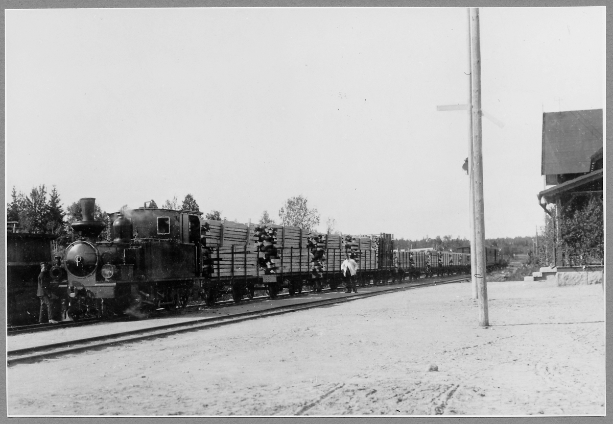 Norra Hälsinglands Järnväg, NHJ lok 2 med godsvagnar vid stationen i Via.