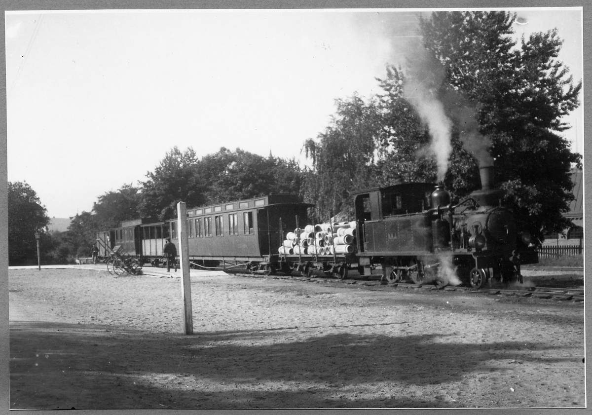Norra Hälsinglands Järnväg, NHJ lok 3 med vagnar vid Hudiksvall station.