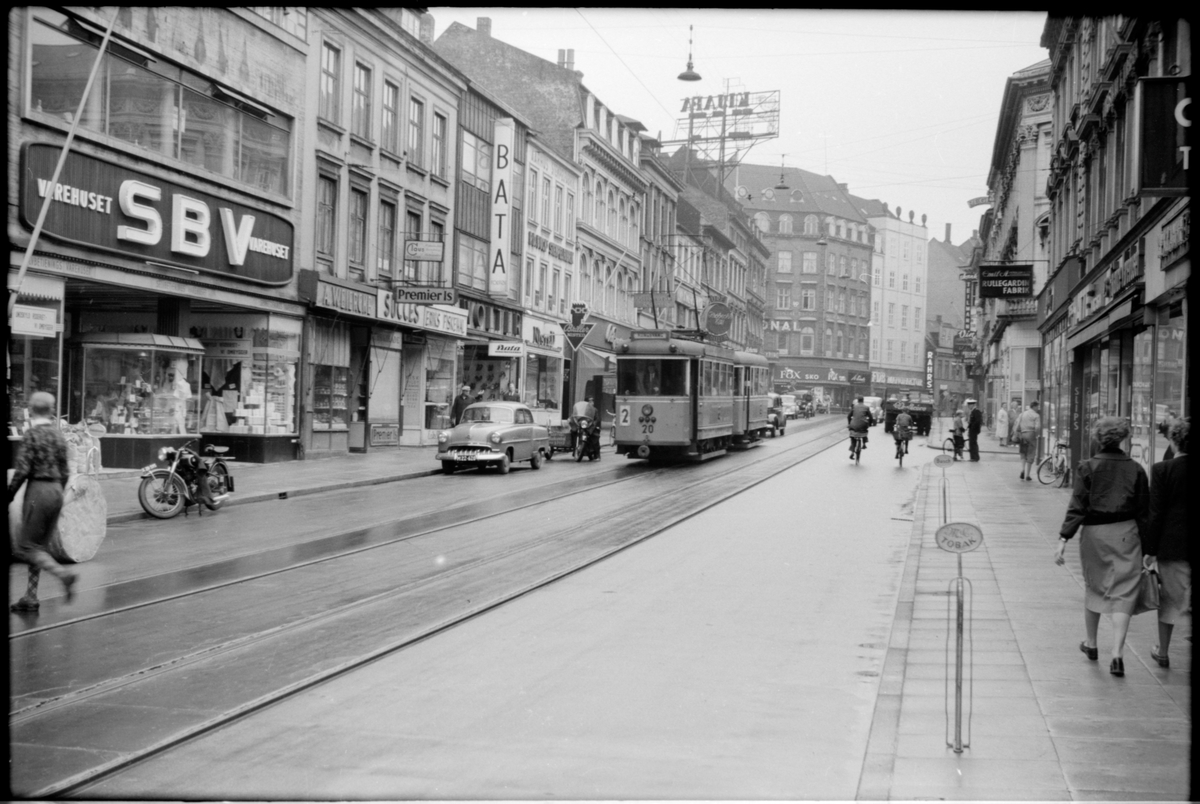 Århus Sporveje, ÅS spårvagn 20 trafikerar på Ryesgade norrut i närheten av Sönder Allé.