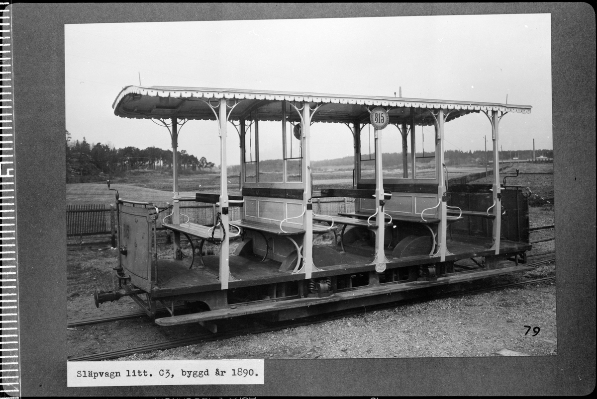 Aktiebolaget Stockholms Spårvägar, SS C3 815. Tidigare Stockholms Nya Spårvägsaktiebolag, SNS C1 305, ursprungligen öppen hästspårvagn 313 för en häst som byggdes mellan åren 1890-1898.