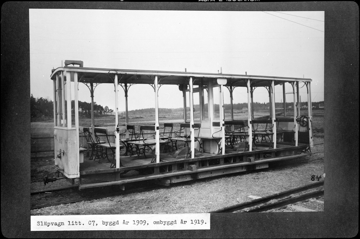 Aktiebolaget Stockholms Spårvägar, SS C7 905 "sommarvagn". Tidigare Stockholms Nya Spårvägsaktiebolag, SNS C5 399 byggd mellan åren 1908-1909. Den byggdes om 1919 med mittgång och 1926 med plattform för stående.