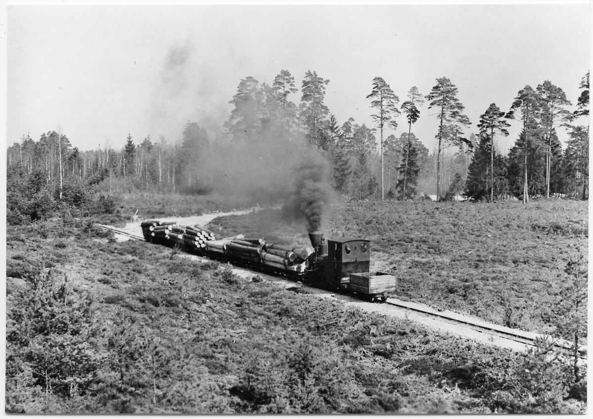 Böda Skogsbana lok 1 "Mormor" med timmervagnar.