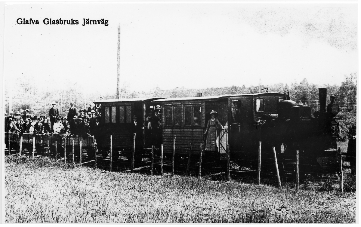Glava Glasbruks Järnvägs lok 2 "Glafa". Vykort från en utflyktsresa i 1900-talets början.