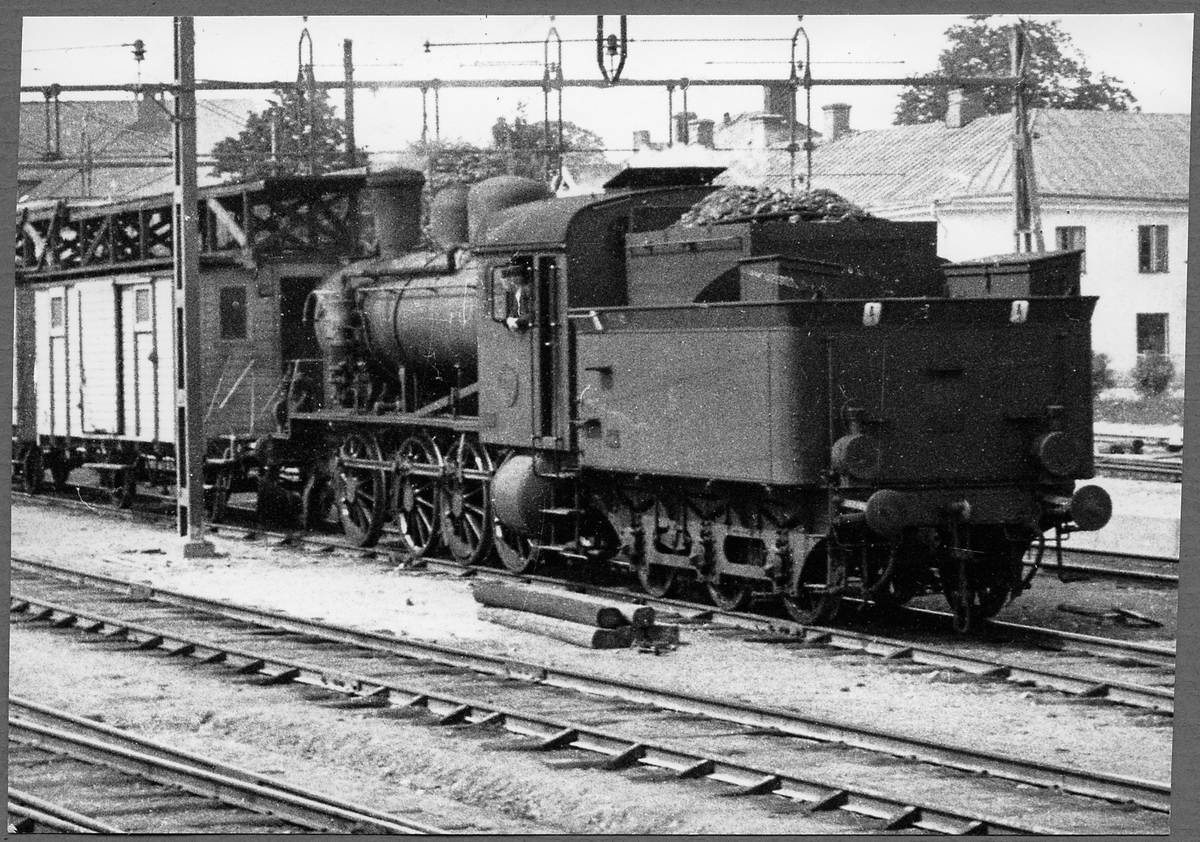 Elektrifieringståg med ånglok Statens Järnvägar, SJ E 1238 vid Alvesta station.
