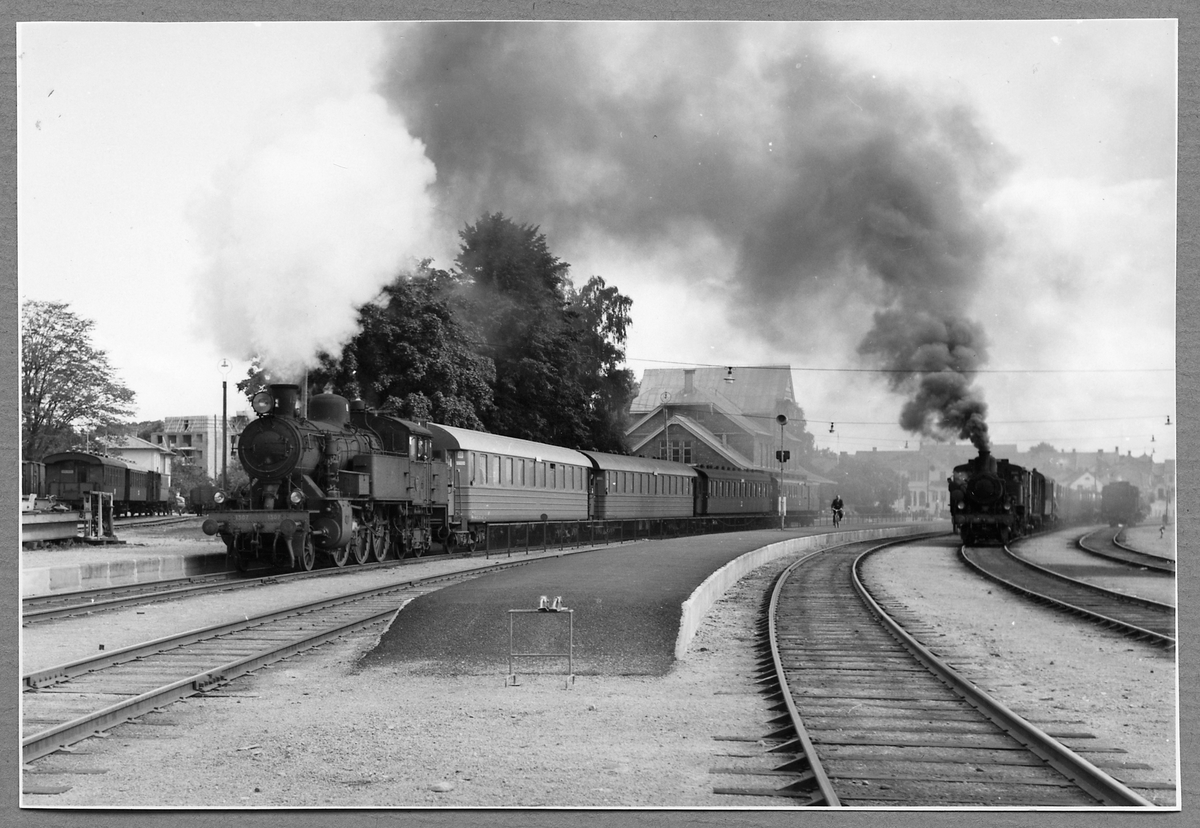 Statens Järnvägar, SJ S2 1307 med persontåg vid Sölvesborg station 1958.