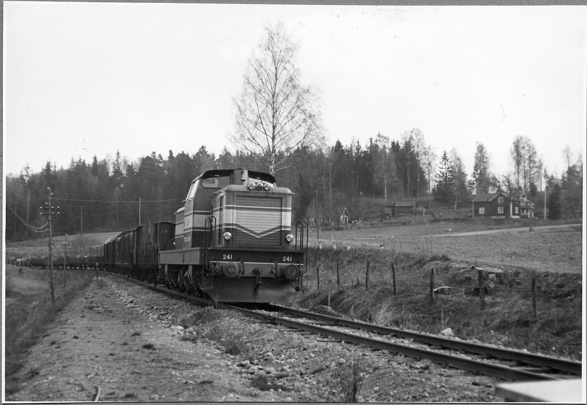 Godståg draget av Statens Järnvägar, SJ T43 240 vid Åhage på linjen mellan Storsjö och Nelhammar.