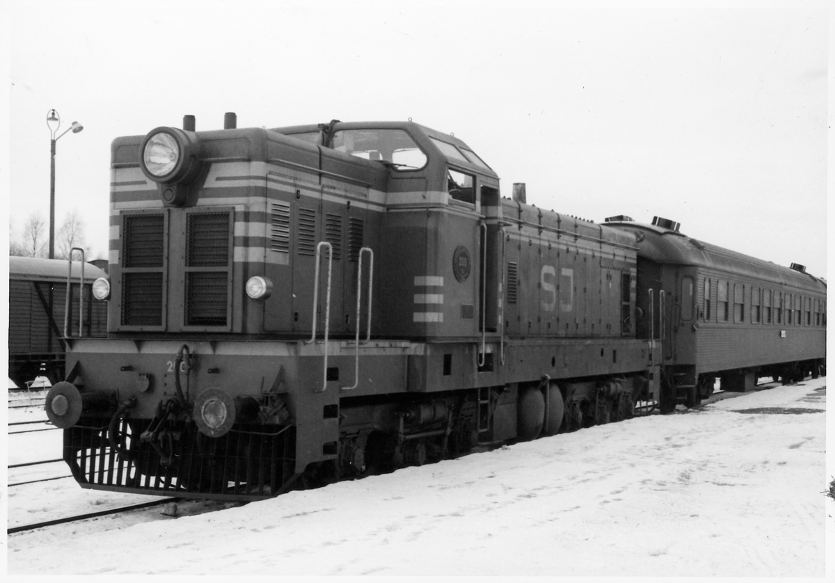 Persontåg draget av Statens Järnvägar, SJ T41 200 vid Mora station.