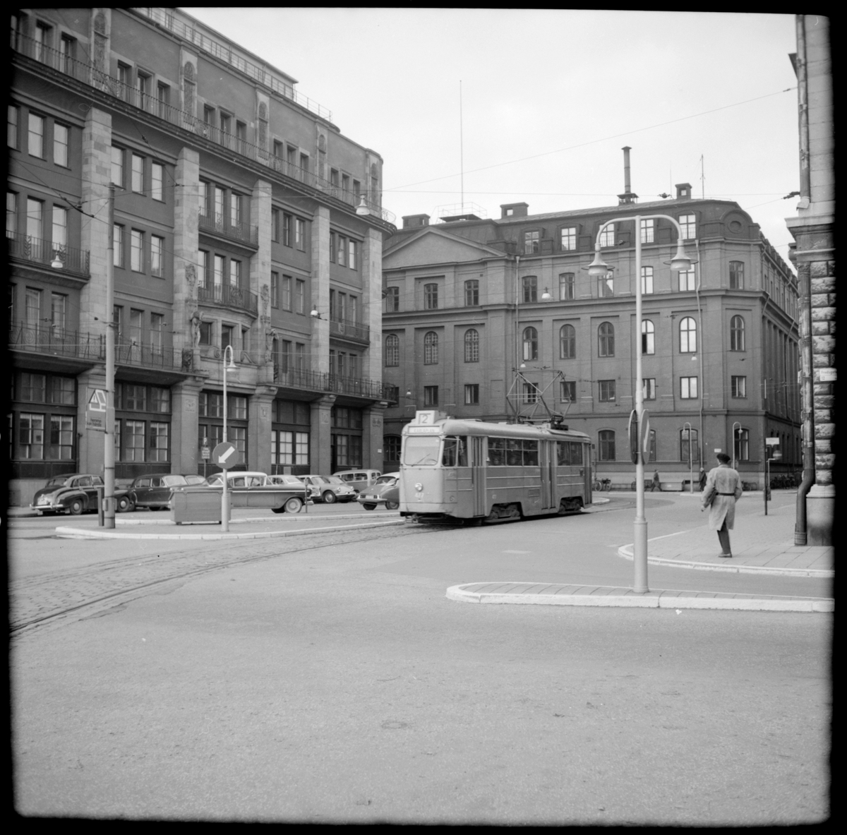 Aktiebolaget Stockholms Spårvägar, SS A26 477 "mustang" linje 2 Fredhäll - Karlaplan vid Rödbodtorget.