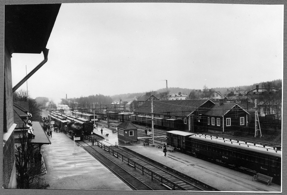 Flens järnvägsstation. Närmast i bild Oxelösund - Flen - Västmanlands Järnväg, OFWJ Personvagn.