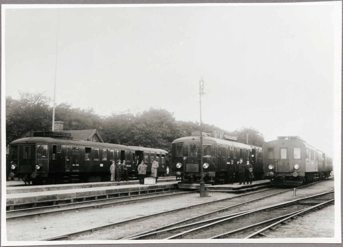Motorvagnar tillhörandes Halmstad Nässjö Järnväg, Skåne Smålands Järnväg, samt Borås Alvesta Järnväg vid Värnamo station.
