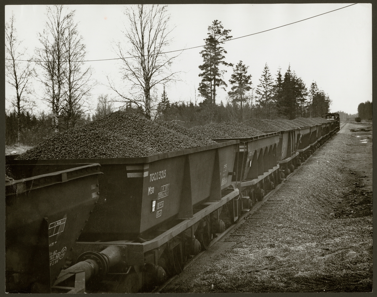Trafikaktiebolaget Grängesberg - Oxelösunds Järnvägar, TGOJ M30 3215 transporterar kulsinter.