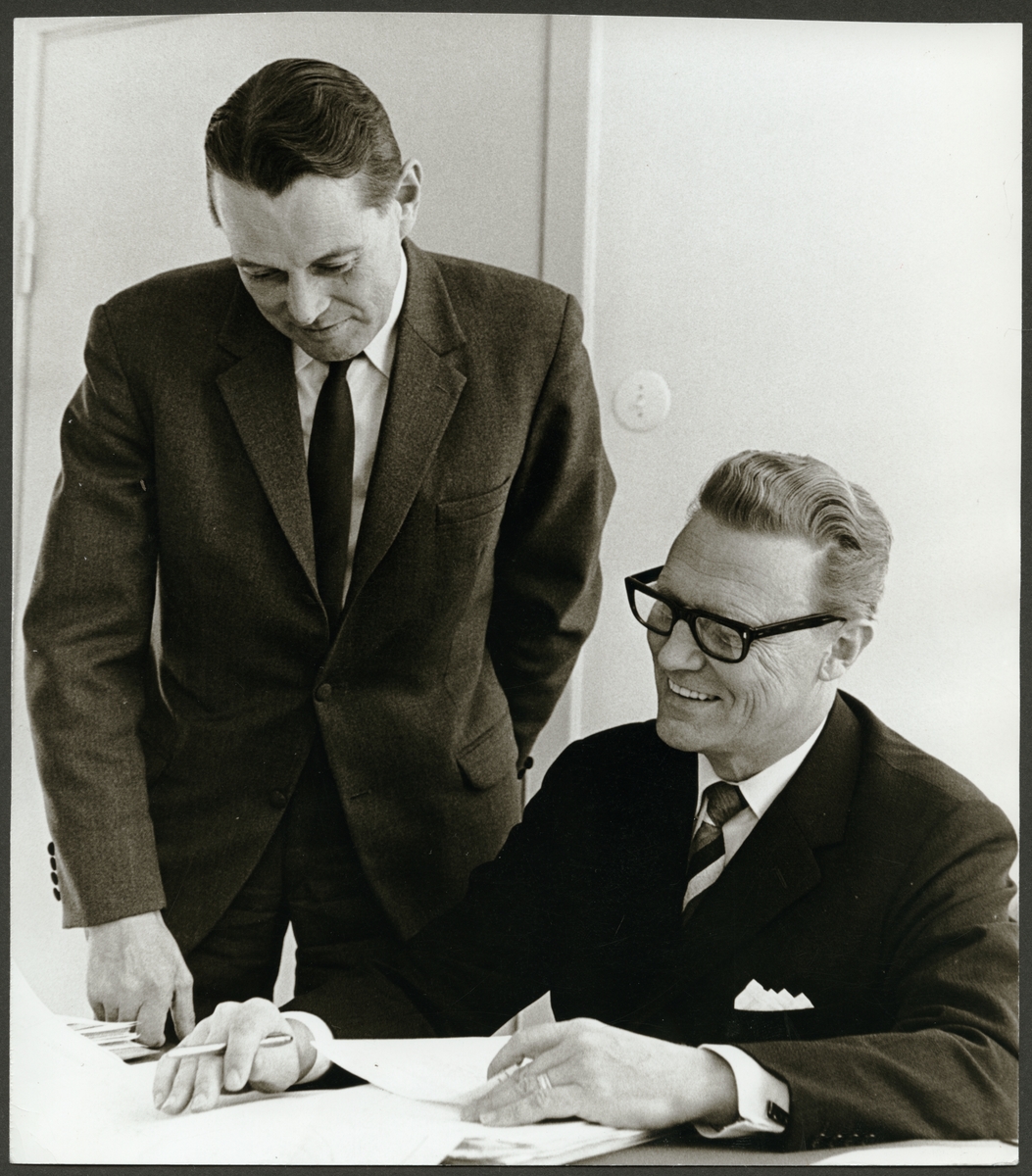 Samtal mellan en sittande Bengt Peel och Gösta Johansson.