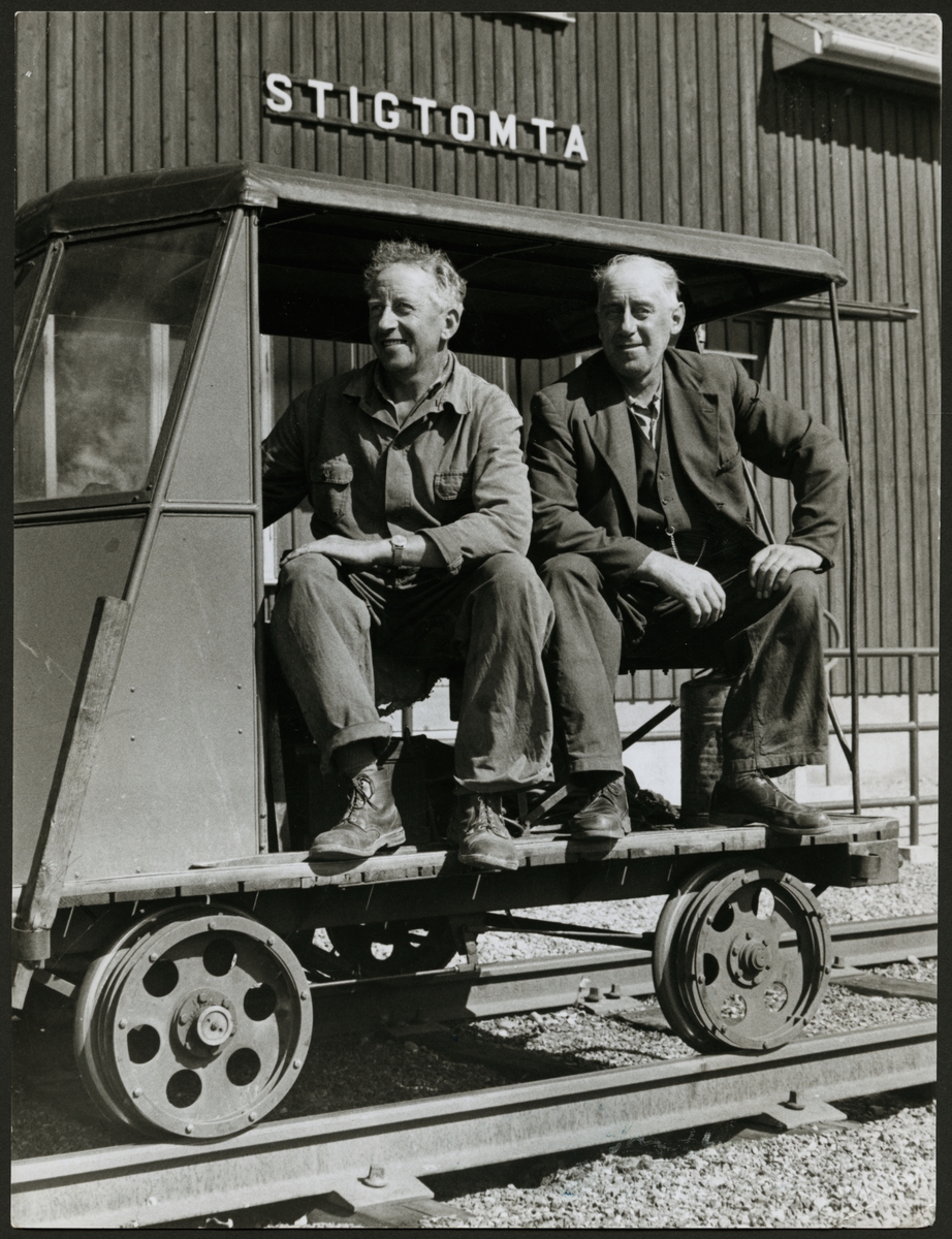 Banarbetarna A. Pettersson och V. Lindberg under en paus i Stigtomta.