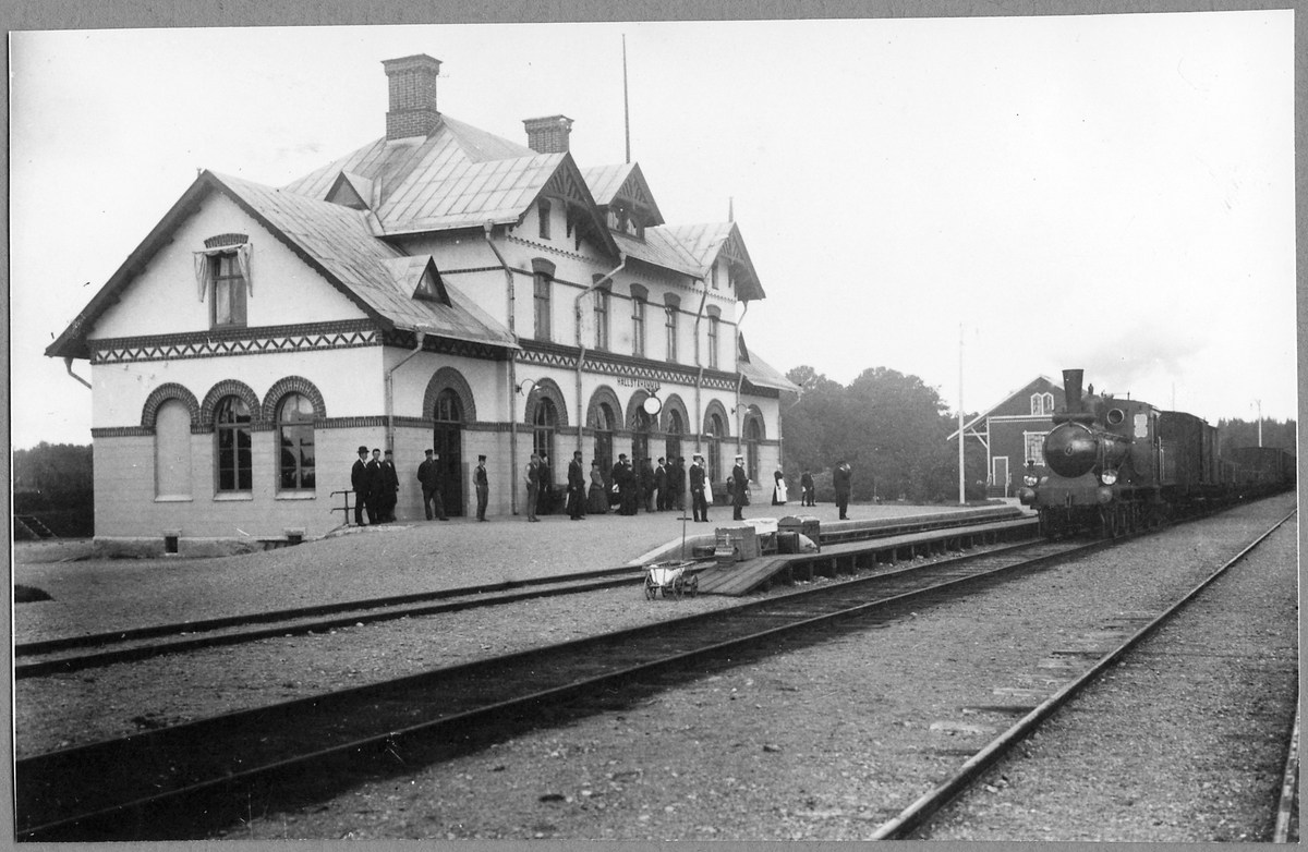 Enköping - Heby - Runhällens Järnvägar, EHRJ lok 1 vid Hallstahammars station.