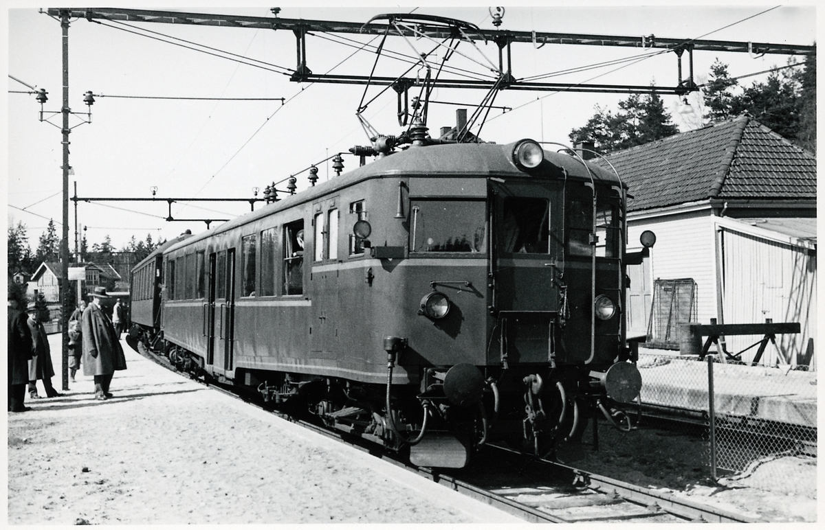 Titel: Østfoldbanen. Motorvagn på station. Norska Statsbanorna, NSB, BM 65a 19.