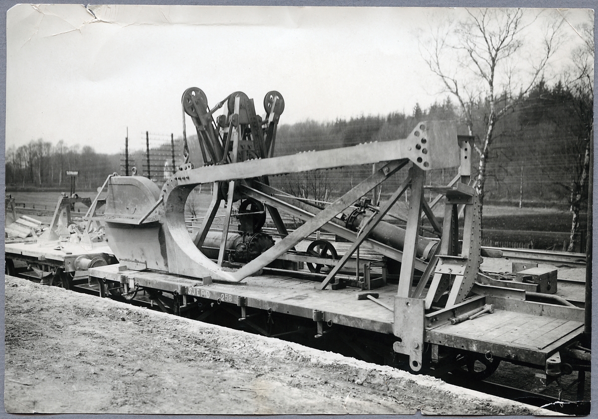 Verktyg för dikesgrävning på godsvagn. Statens Järnvägar, SJ EFD 258.