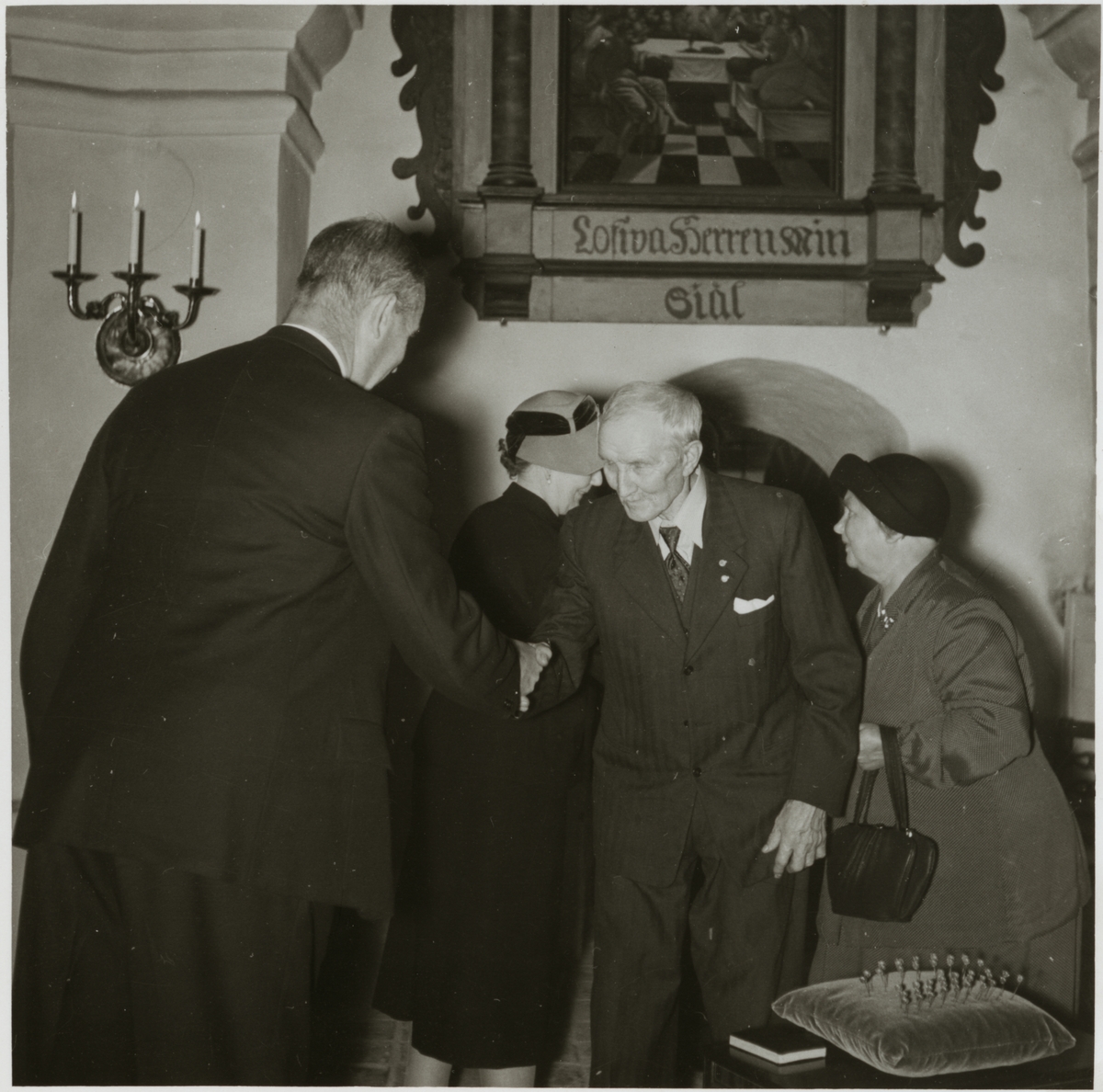 Titel: Trafikchef Granfeldt med fru och före detta stationskarlen Axel Thorsell med fru.