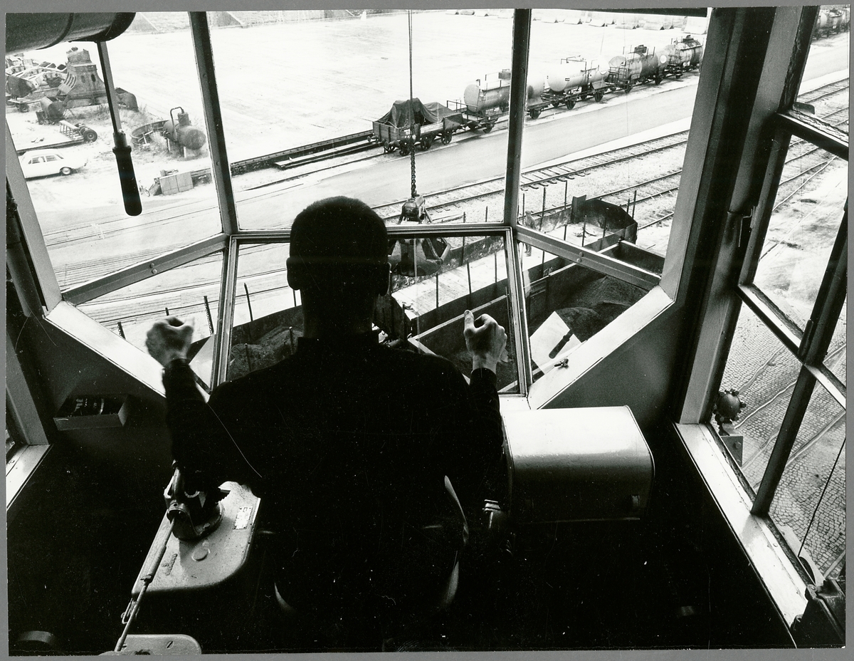 Lastning av krommalm på godsvagn i Oxelösunds hamn.