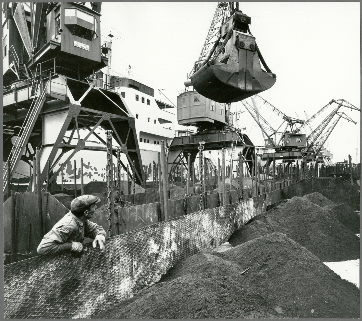 Lastning av krom malm på godsvagn vid Oxelösunds hamn.