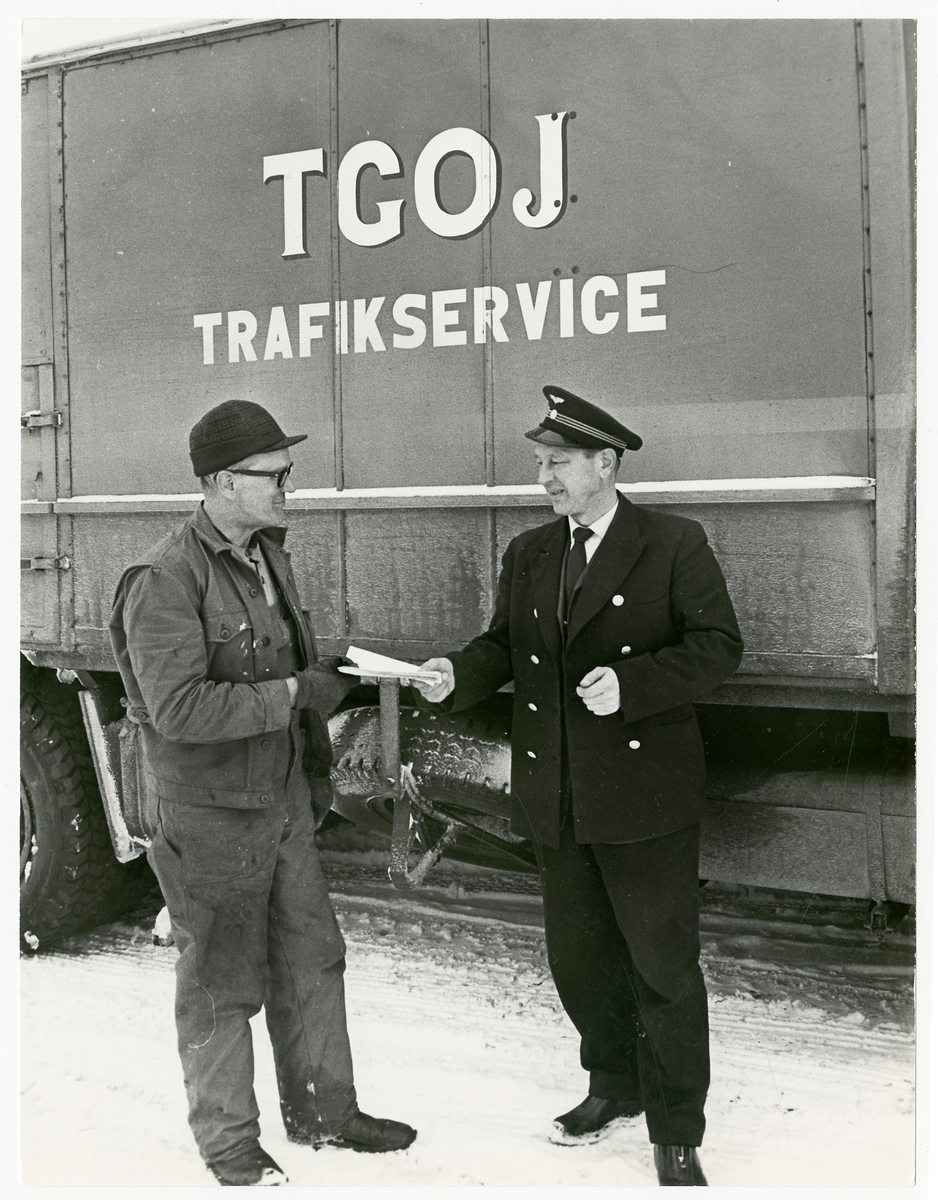 Trafikaktiebolaget Grängesberg - Oxelösunds Järnväg, TGOJ personal vid lastbil.