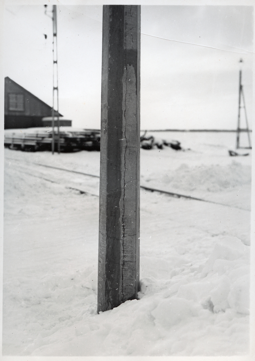 Skadad stolpe vid LKAB's kontor på Svartön.