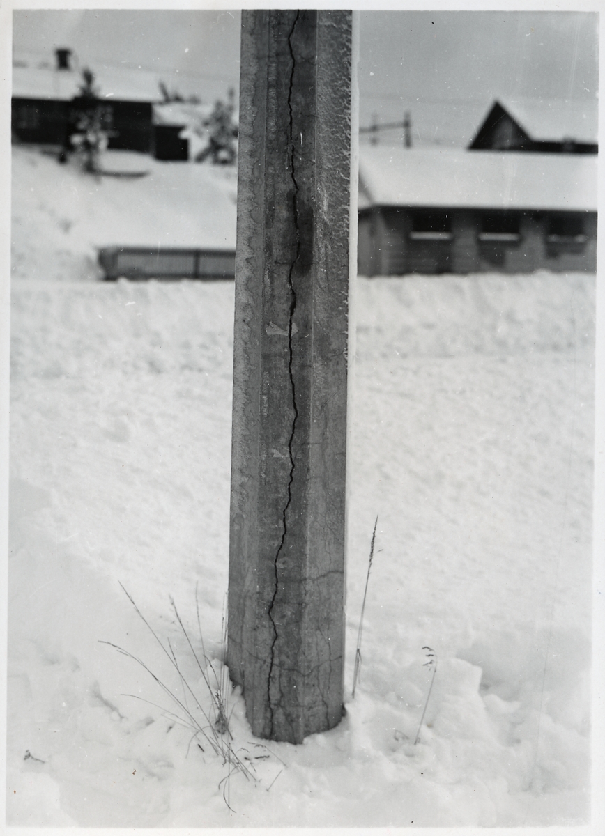 Titel: Skadad stolpe vid LKAB's kraftstation på Svartön.