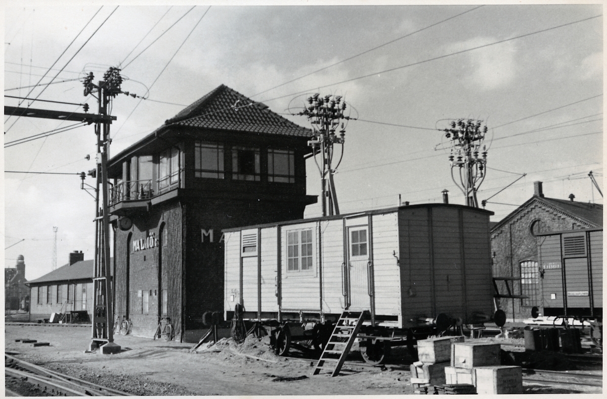 Malmö Centrals ställverksbyggnad. Statens Järnvägar, SJ godsvagn 13617.