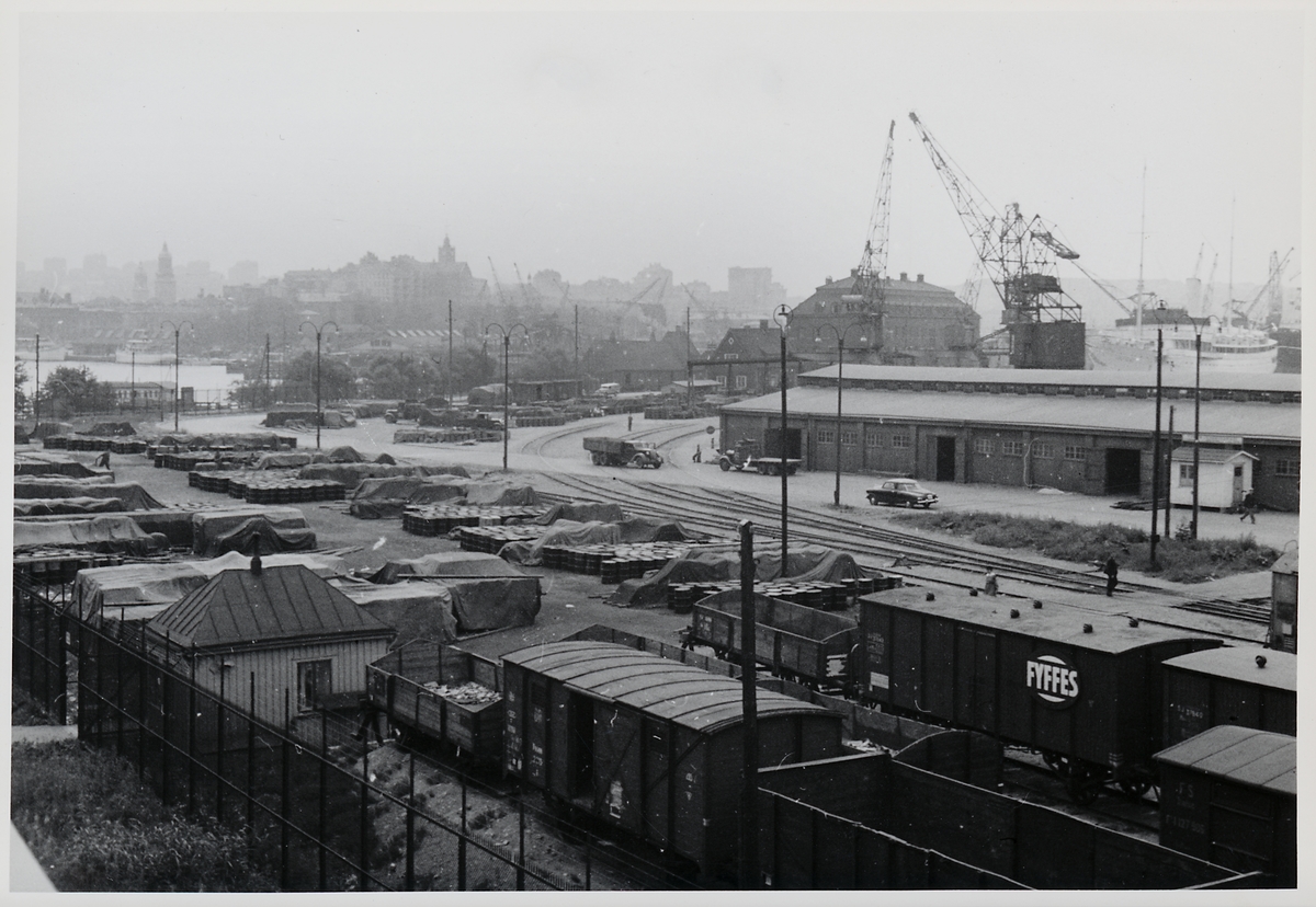 Vy från Götaälvbron mot Frihamnsbangården i Göteborg.