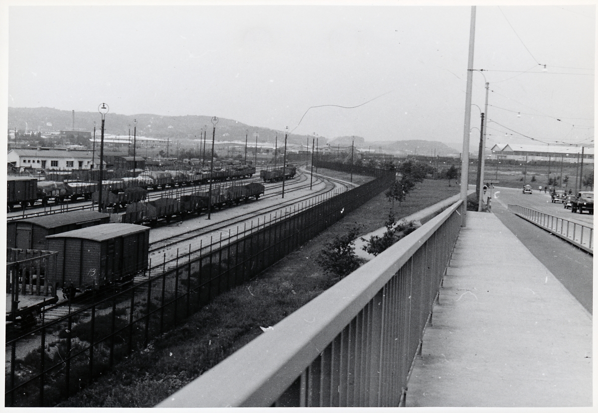 Vy från Götaälvbron mot Frihamnsbangården i Göteborg.