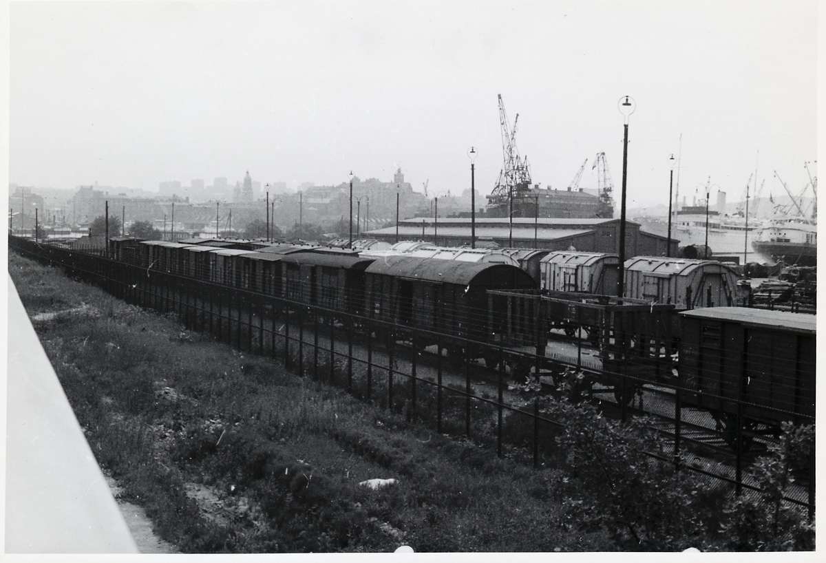 Vy från Götaälvbron mot Frihamnsbangården i Göteborg.