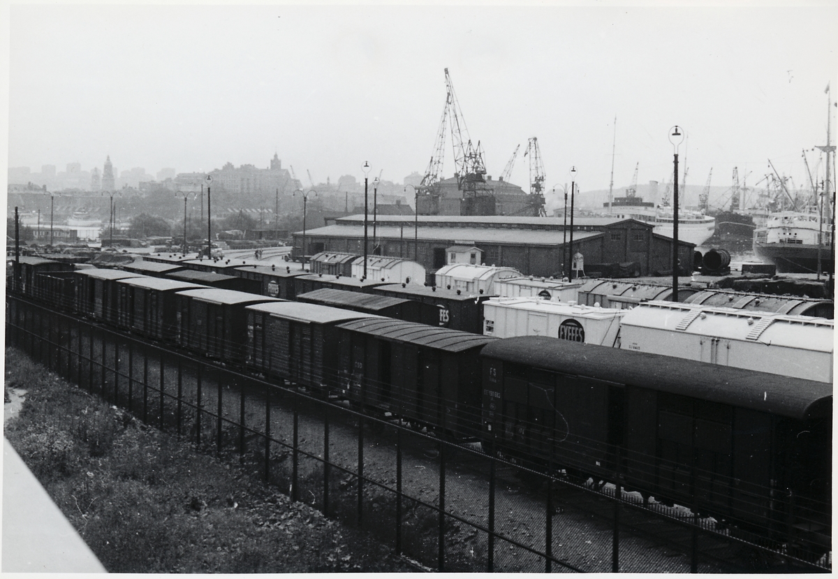Vy från Götaälvbron mot Frihamnsbangården i
