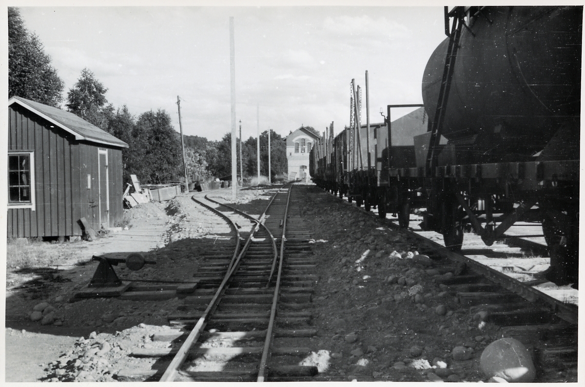 Munkedal. Spåret till vänster tillhör Munkedals Järnväg, MJ, spårvidd 600 mm.