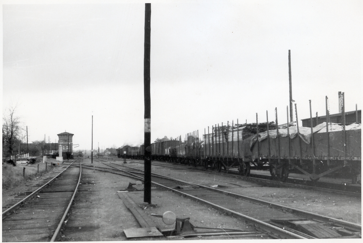 Vattentornet som fyllde ångloken med vatten syns i bakgrunden.