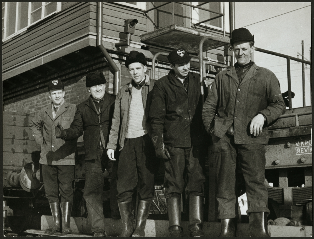 Personal framför ställverket vid Grängesbergs malmbangård.