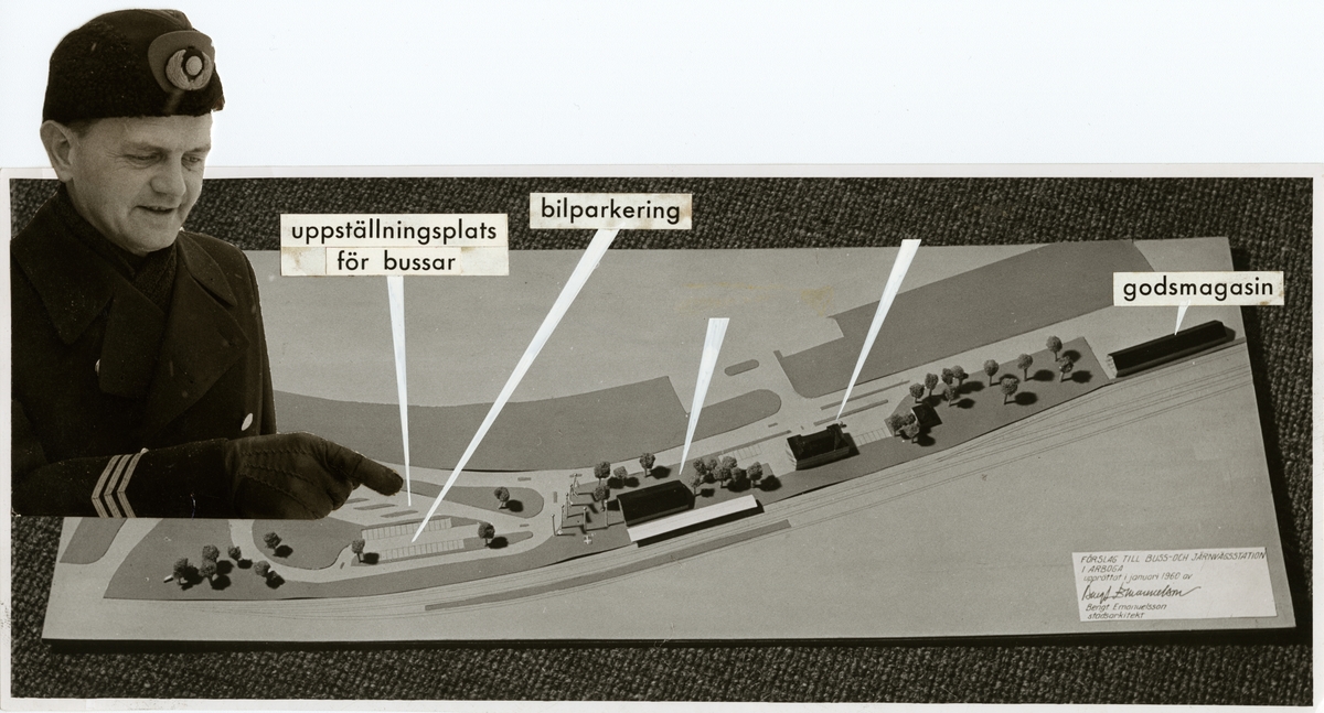 Förslag till Buss- och järnvägsstation i Arboga upprättat i Januari 1960 av Bengt Emanuelsson stadsarkitekt .