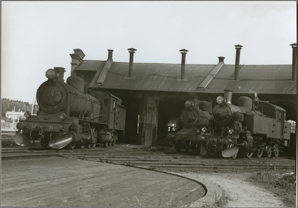 Trafikaktiebolaget Grängesberg – Oxelösunds Järnvägar, TGOJ M3 50, TGOJ C3 37 och TGOJ S3 58 vid Köping lokstall.