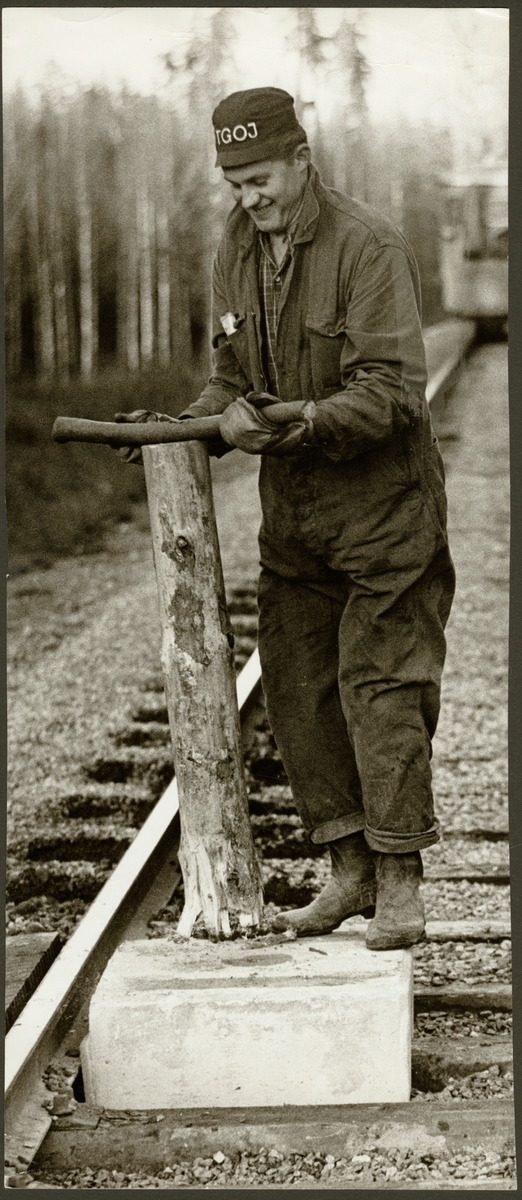 Kjell O Ragnarsson i arbete med stöt vid underhåll av sträckan mellan Harsjön och Bälgviken 1967.