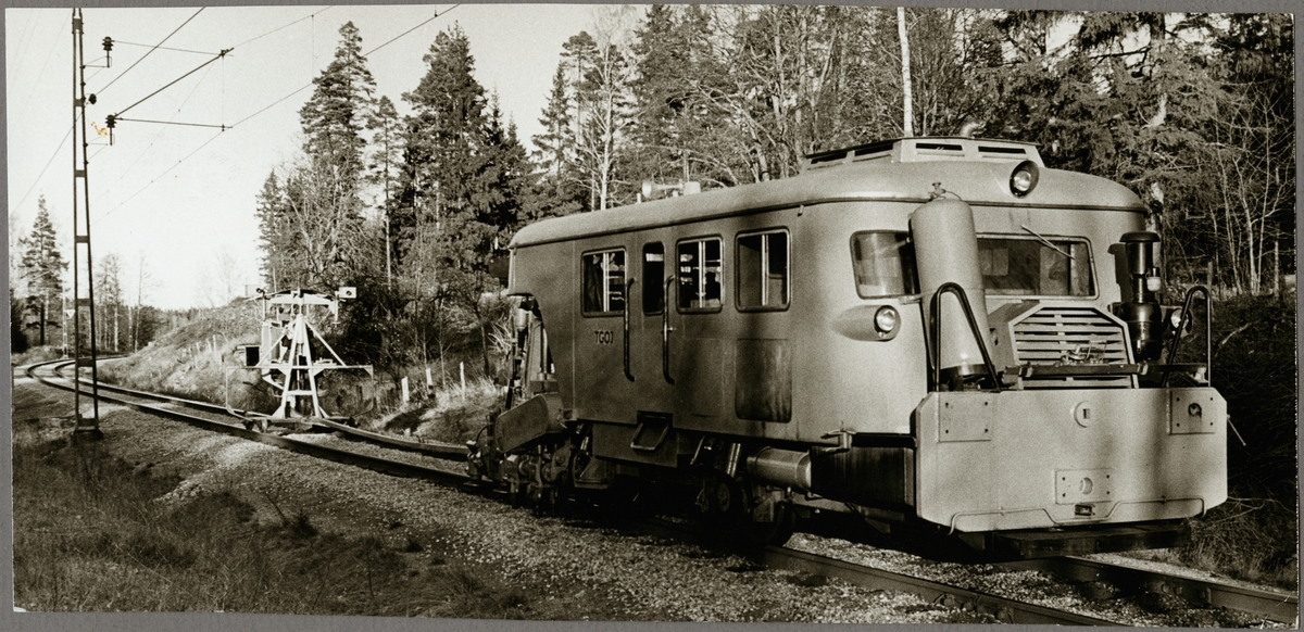 Underhåll av banan med hjälp av ballaststoppmaskin på sträckan mellan Harsjön och Bälgviken 1967.