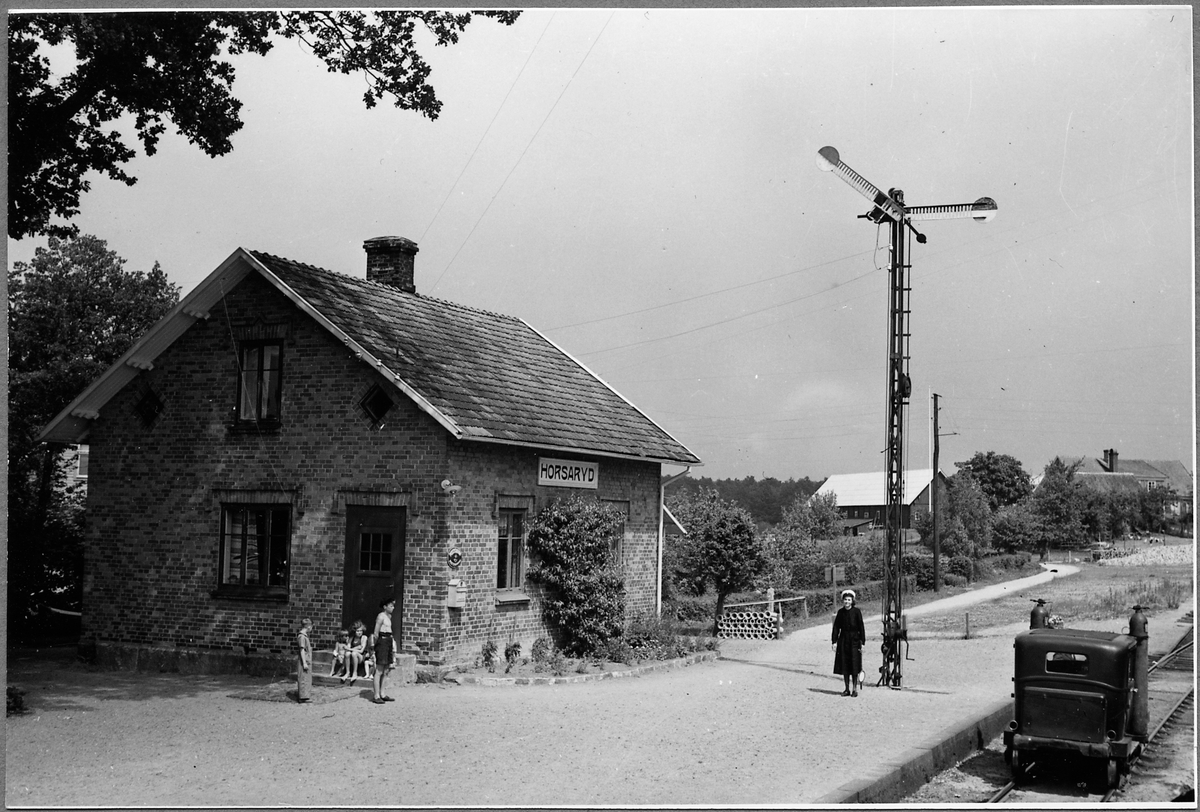 Motordressin passerar Horsaryd Järnvägsstation vid Västra Blekinge Järnväg, WBIJ.