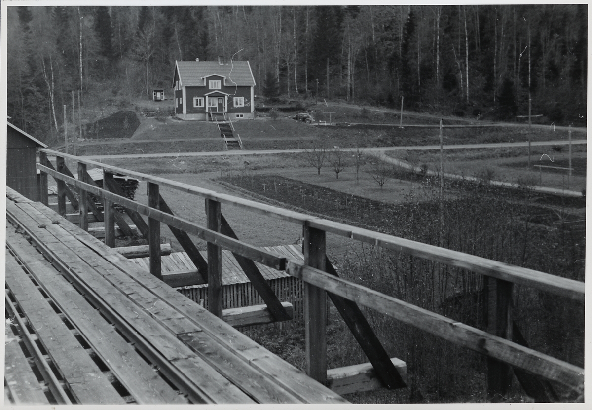 Toremosse torvfabriks smalspåriga järnväg passerar på en bro över Uddevalla - Vänesborg - Herrljunga Järnväg, UVHJ, i närheten av lastplatsen Flo mosse