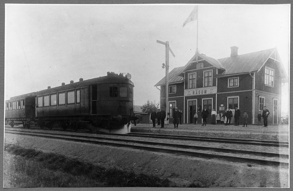 Ångvagn vid Näsum station. Sölvesborg-Olofström-Älmhults järnväg, SOEJ ångvagn 1.